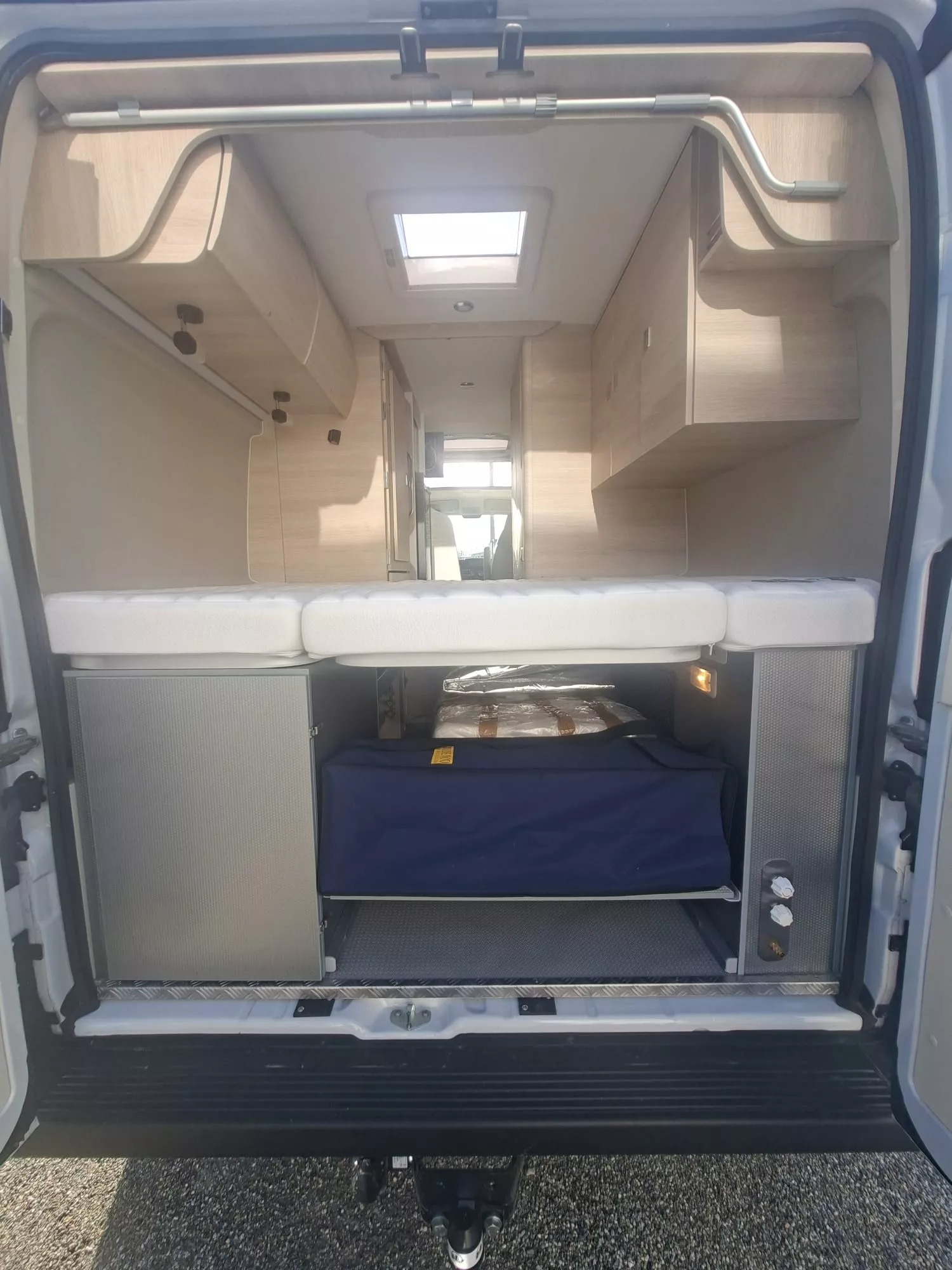 Soute-garage : Non Services : E.P. / E.U. : 110 / 85 l; – propane 2 x 13 kg; chauffage air pulsé sur gaz Truma C4
